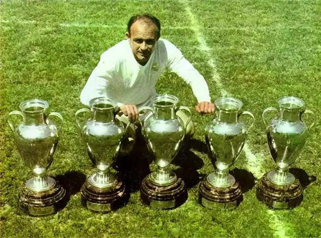 头号球星,绰号“金箭头”的迪·斯蒂法诺,效力皇马11年,8次赢得西甲冠军,5次西甲金靴,5次欧冠决赛都有进球,2次荣膺金球奖。如果换个时代,迪·斯蒂法诺完全可以跟C罗、梅西比金球奖以及各种进球数据。
